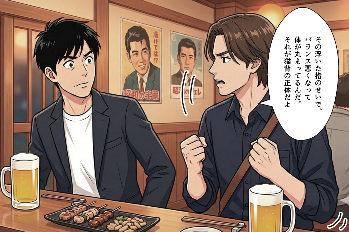 土台(足元)のバランスが崩れた結果、姿勢が悪くなるんです。