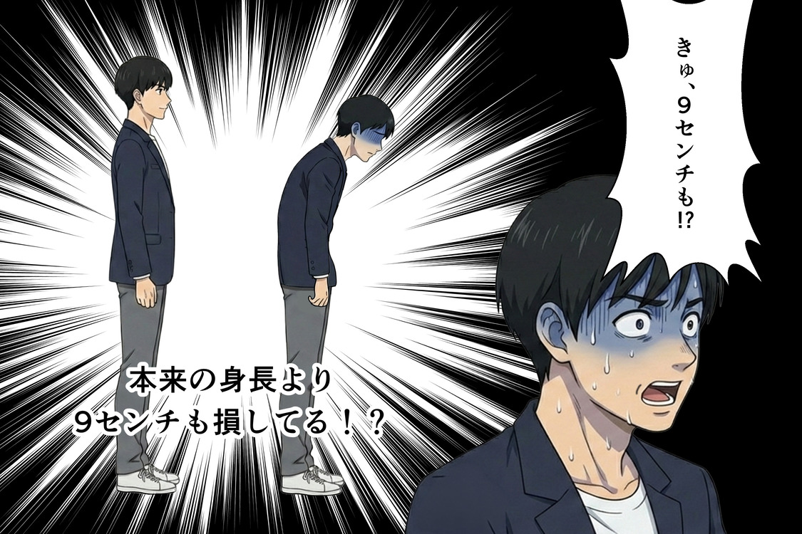 猫背により9cmも身長が低くなるんだとか。